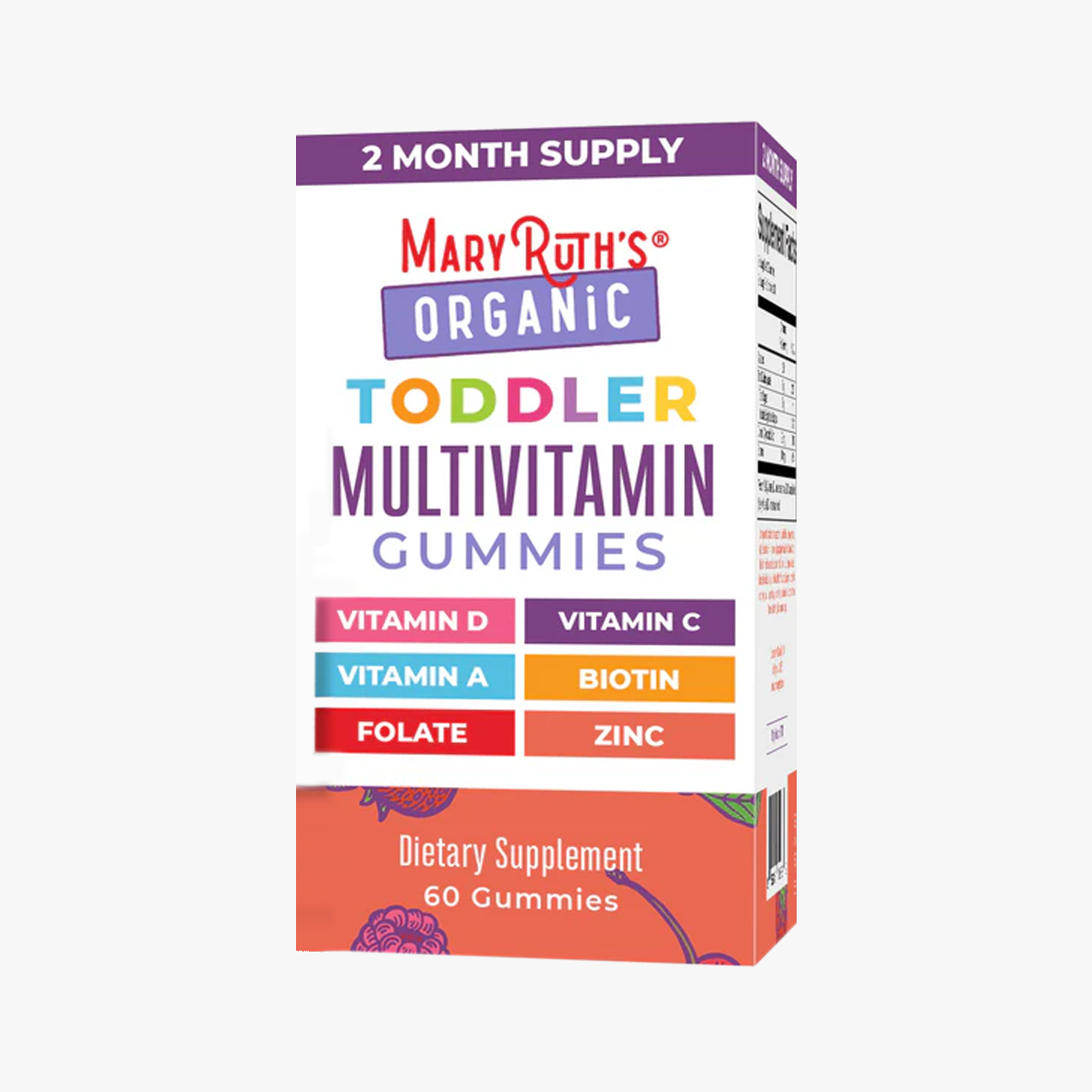 Vitaminas diarias en gomitas: C, D3 y zinc. Sabor mezcla de frutos rojos y cereza. Certificación USDA Organic, veganas y sin GMO. Libres de gluten, lácteos, soja y frutos secos. 2 meses de suministro (aprox. 60 gomitas). Aprobadas para niños desde los 2 años.